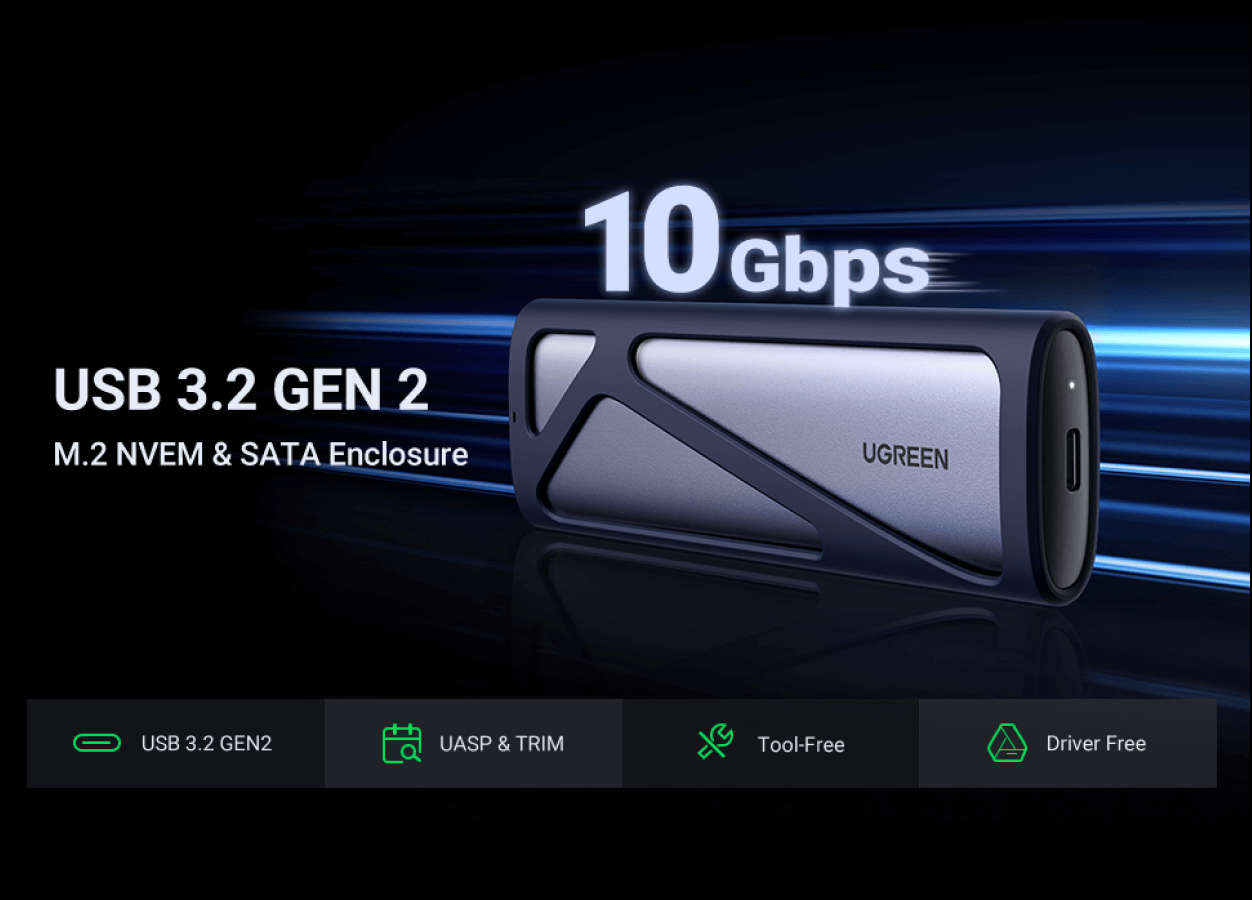 UGREEN 10Gbps M.2 NVMe SATA Enclosure