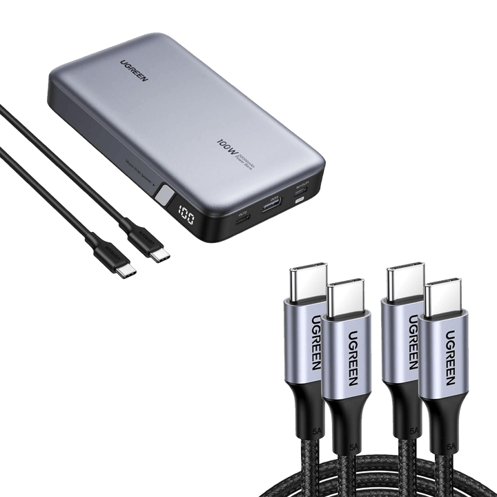 (Bundle) 100W 20000mAh Power Bank + 3.3FT 100W USB-C Cable 2 Pack