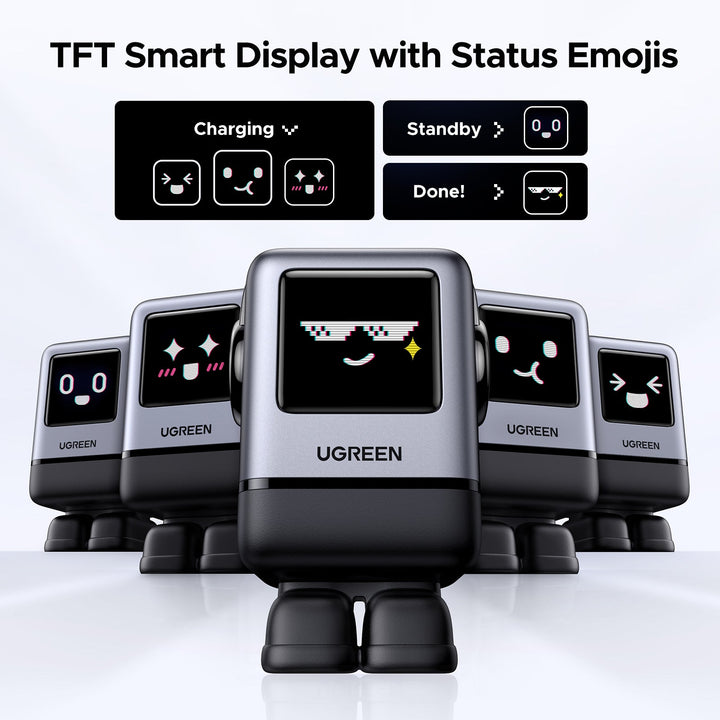 - Groovy Robot Design: Creative robot-shaped charger with a TFT screen that shows fun charging expressions. Magnetic feet attach securely to laptops.